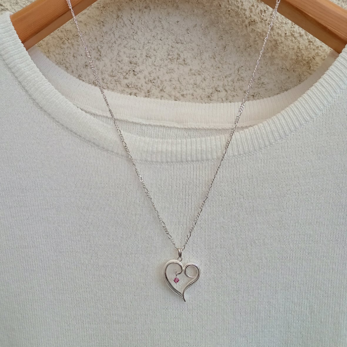 繊細な印象のハートにパープルのサファイアがさりげない華やかさを感じさせてくれるペンダントトップです。