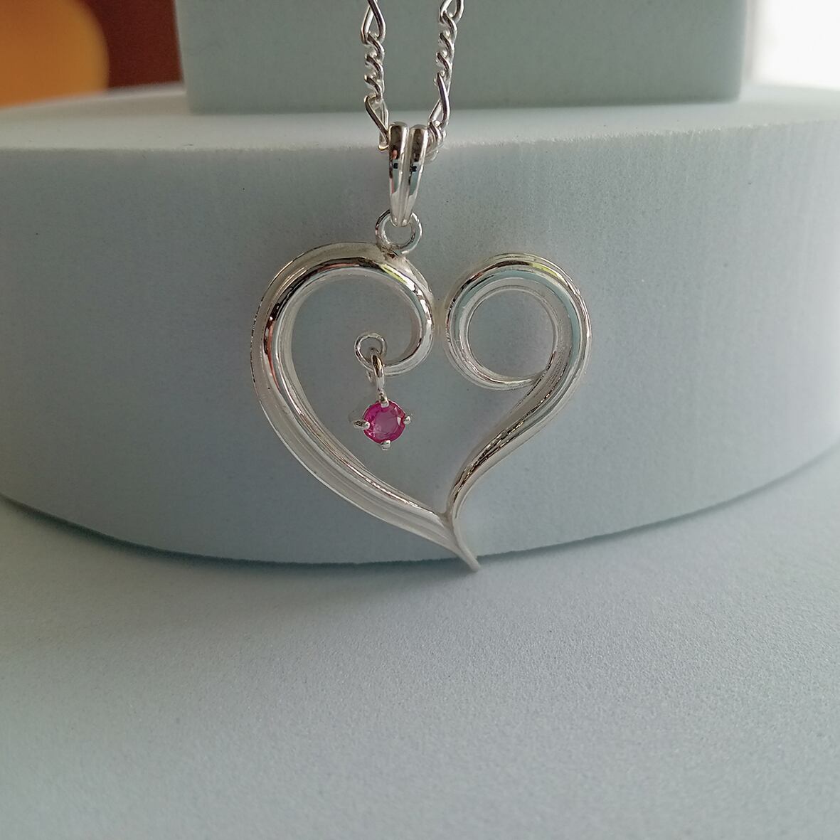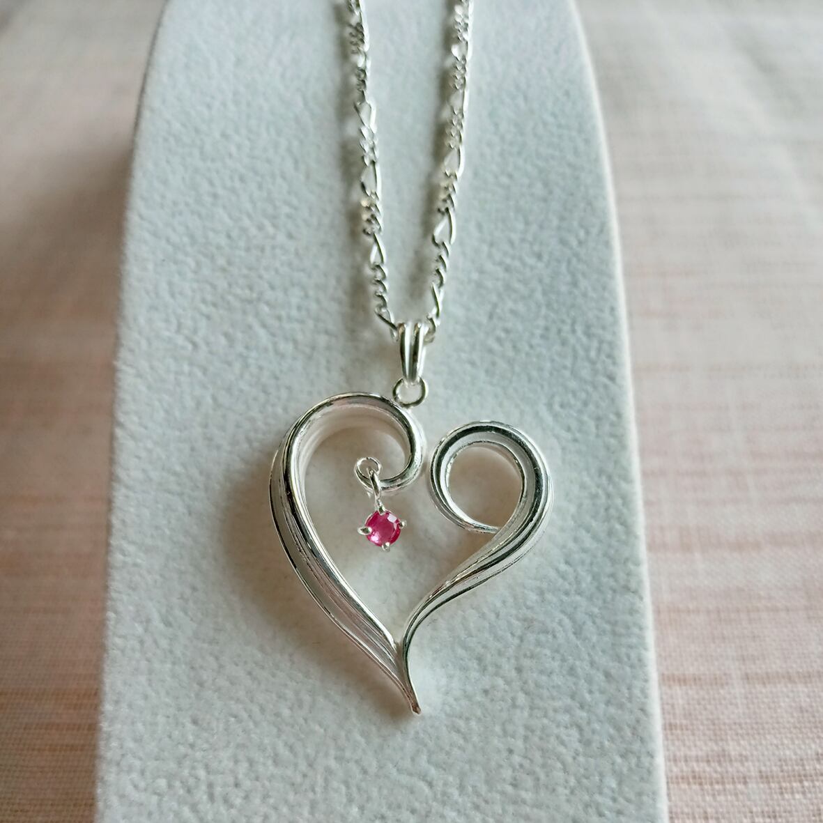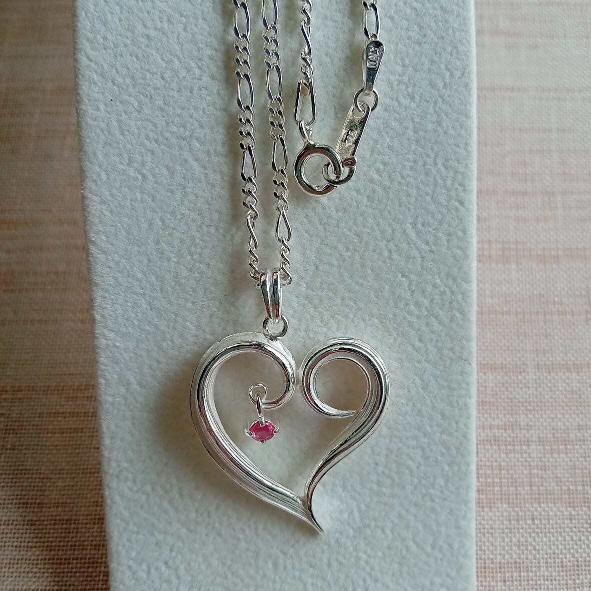 蜜ろうのハートの曲線 とパープルサファイア silver925 ペンダント