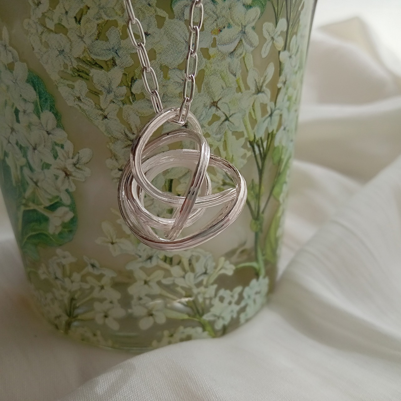 そして球体の好きな場所、鎖を通す場所によって見え方が違ったり、皮ひもやリボン、ワイヤーネックレスなど組み合わも自在に遊べます。