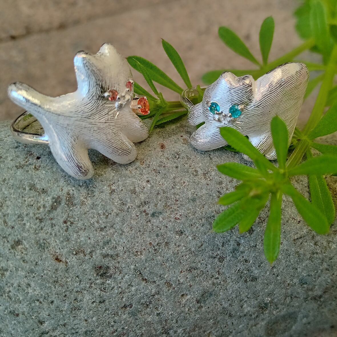 幻想的なグリーンのトルマリン、パライバの瞳の ネコリングです。
