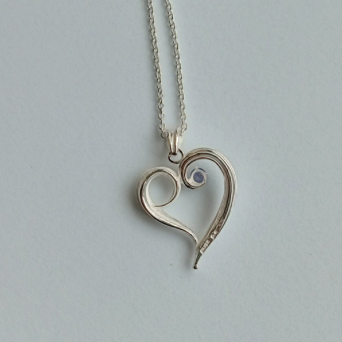 蜜ろうを使って流れる自然の曲線をハートに形作り、シルバーのペンダントに仕上げました。