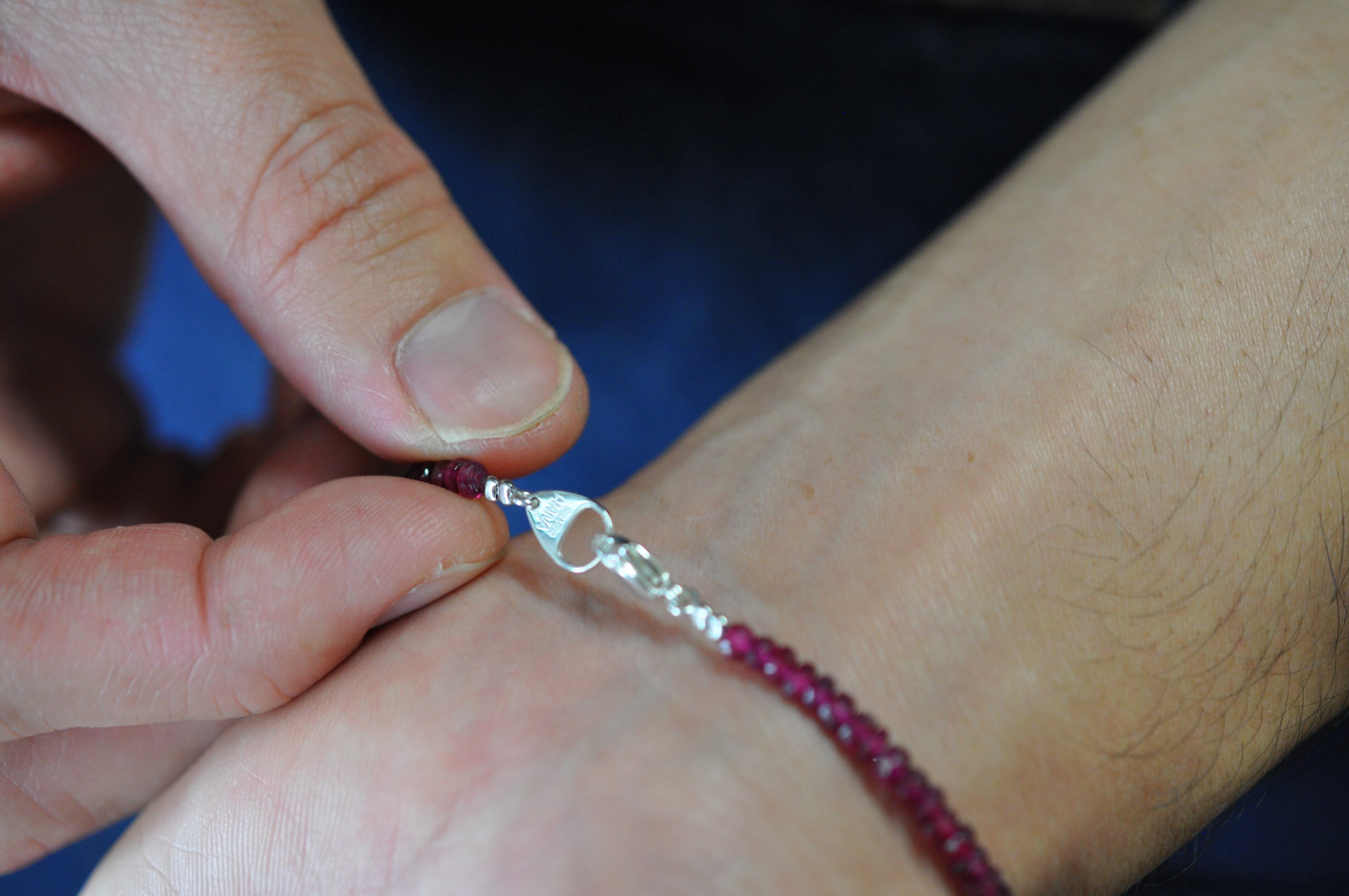 私たちはそうしたメリットを取り入れて、今回「ニューヒート」のルビーを使い、日常の中でも使いやすく、個性的なブレスレットを作りました。