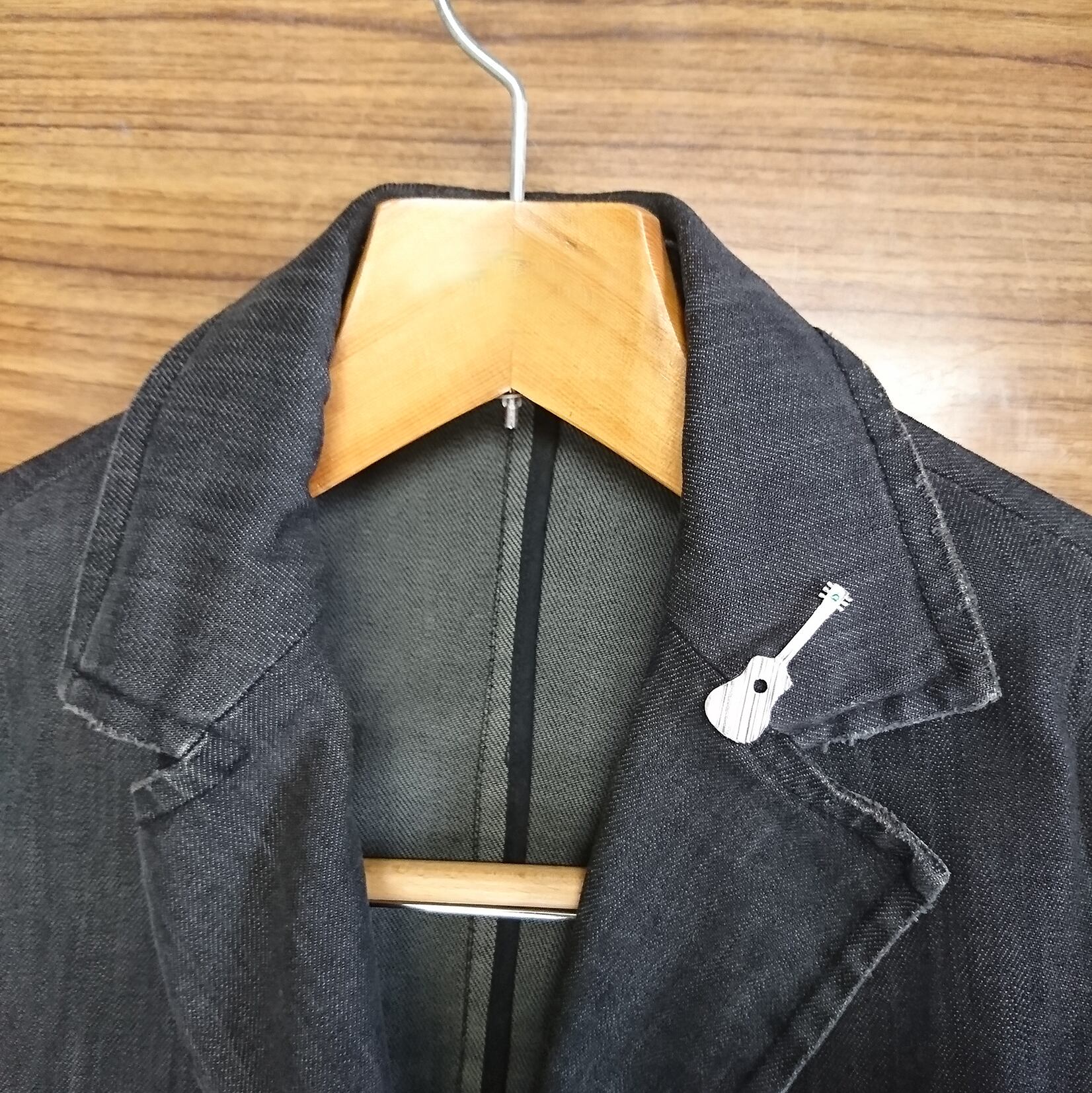 アンプラグドギターが奏でる、シャープでいて温もりのある旋律や弦の波動をボディ全体にデザインしたギターのブローチです。