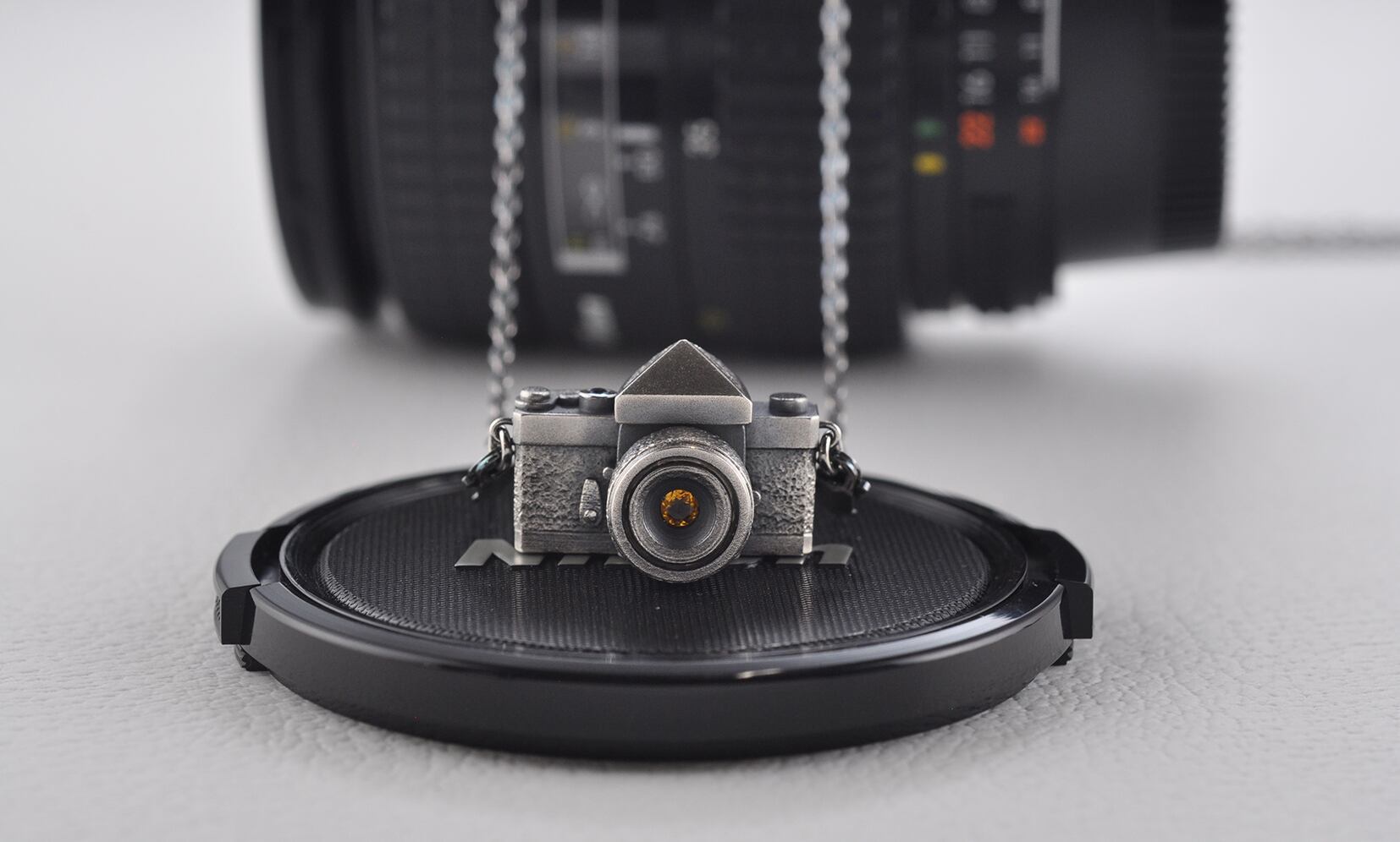 一眼レフカメラの名機「ニコンF」をオマージュしたカメラ型のペンダントです。