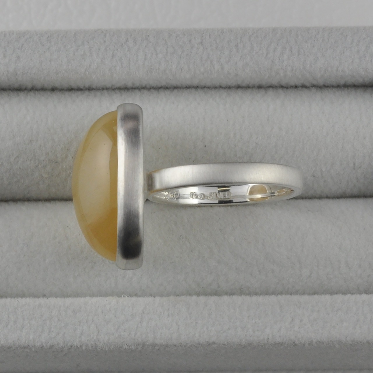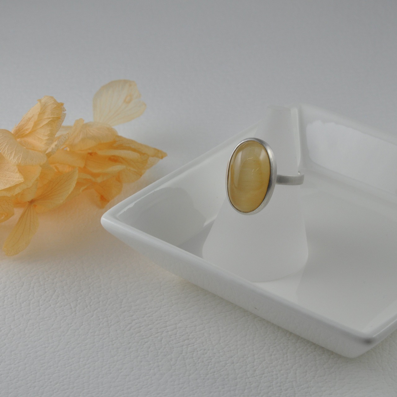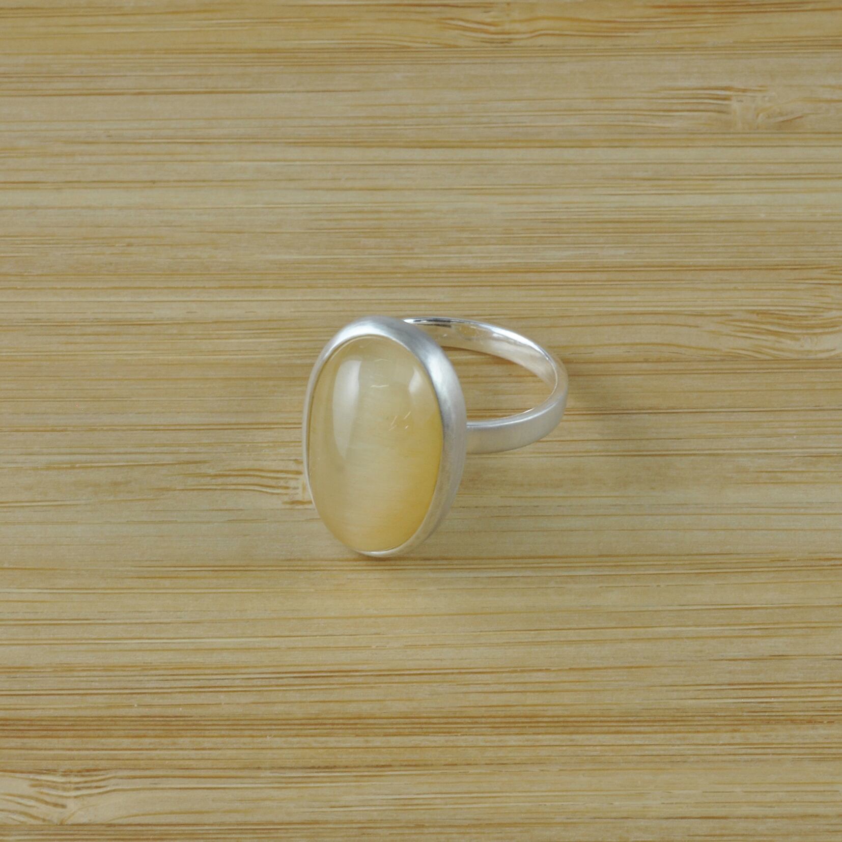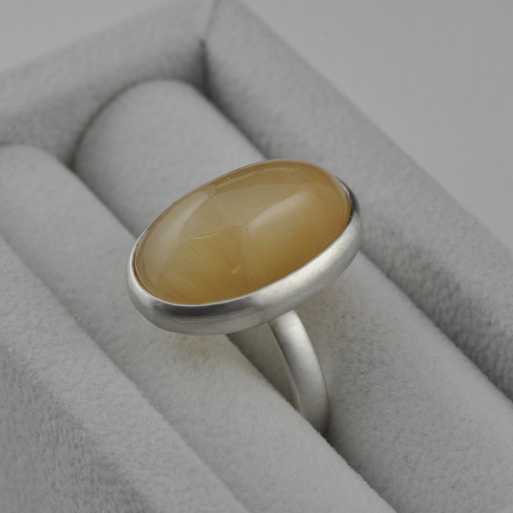 ベリルならではのやわらかさを感じる色味に、光の当たり方で見えるキャッツアイの美しさや、表面の色の黄色からオレンジ系の濃さが違って見えるなど一つの石でたくさんの表情が楽しめるのもこのベリルの良さです。