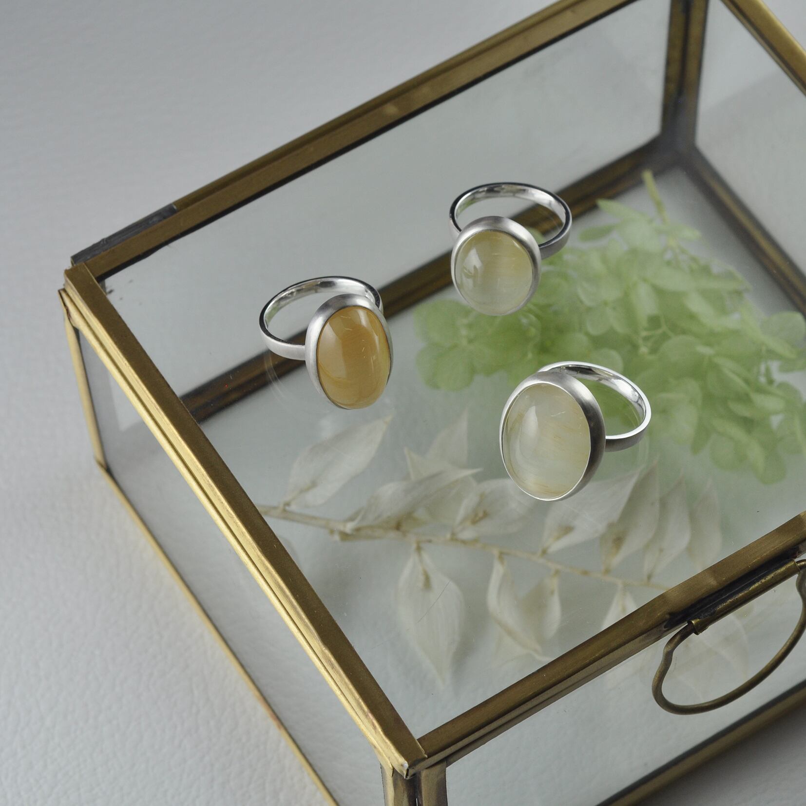 エメラルドなどは透明感のある宝石をイメージしますが、透明ではないベリルにはキャッツアイと呼ばれる光のすじが現れるものがあり、今回はその中でも11カラット〜17カラットとボリューム感のある3つのベリルを、それぞれリングに仕立てました。