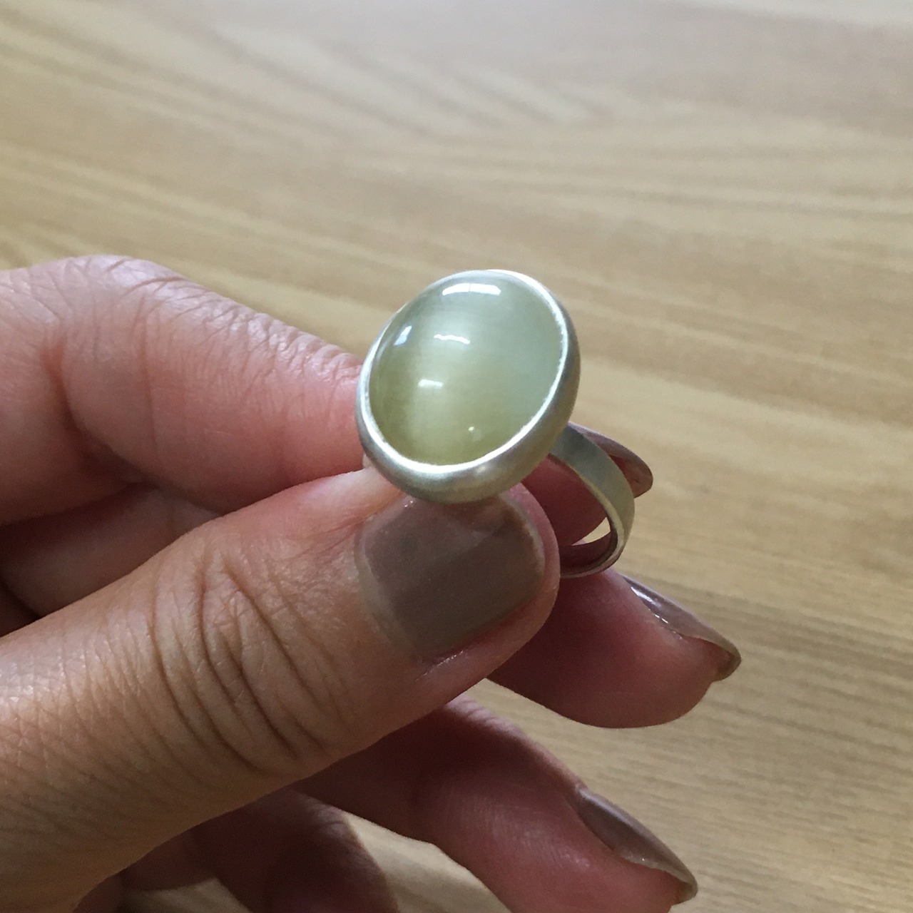 ベリルキャッツアイ カボションカット SV925リング 天然ベリル11.24カラット