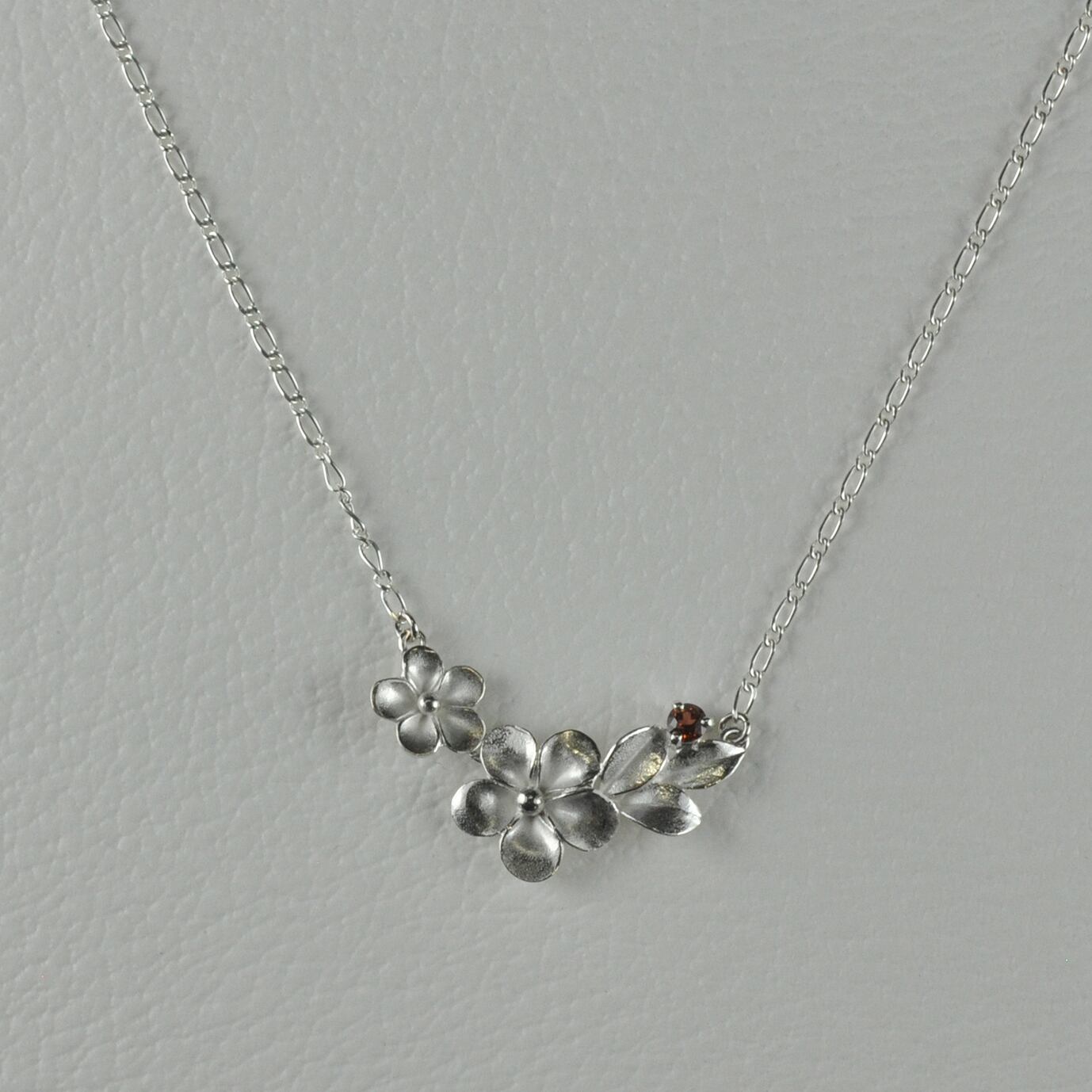 赤い実と白い花のネックレス 天然ガーネット SV925
