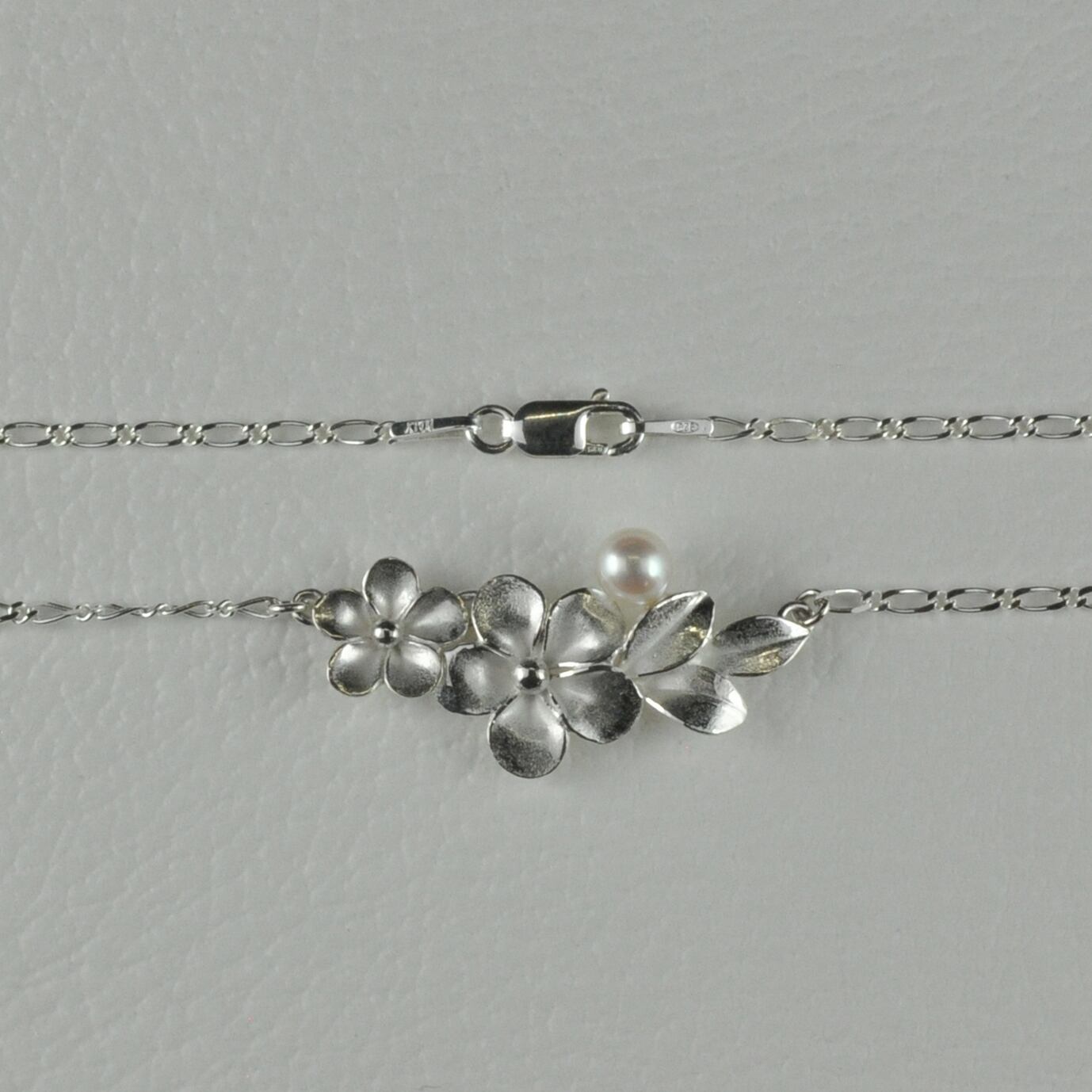 白い花とつぼみ SV925ネックレス 6月誕生石 パール