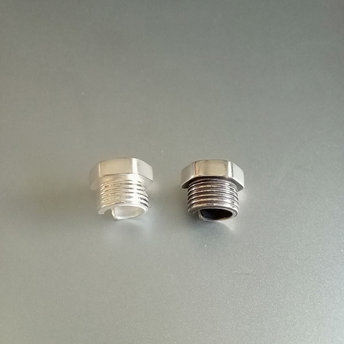 一般的に、地金のシルバーは経年とともに少しづつ硫化による茶~黒味への変化が起きていきます。(この変色は錆び・腐食とは違います。)