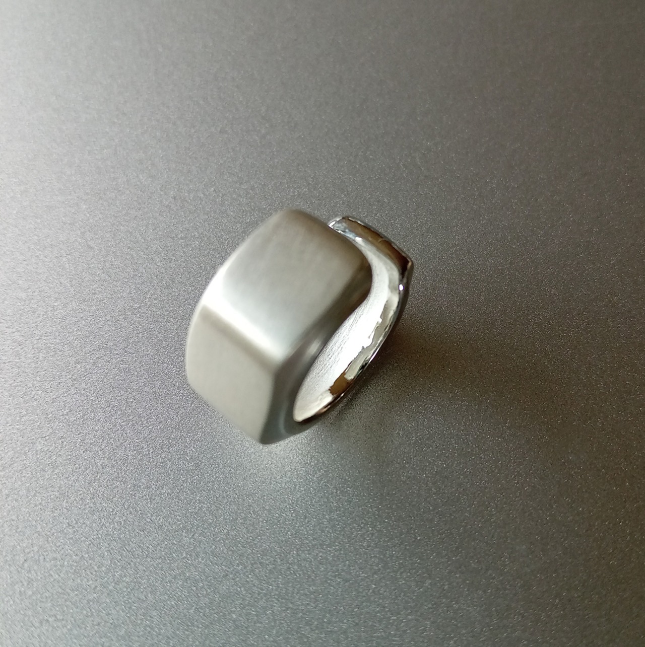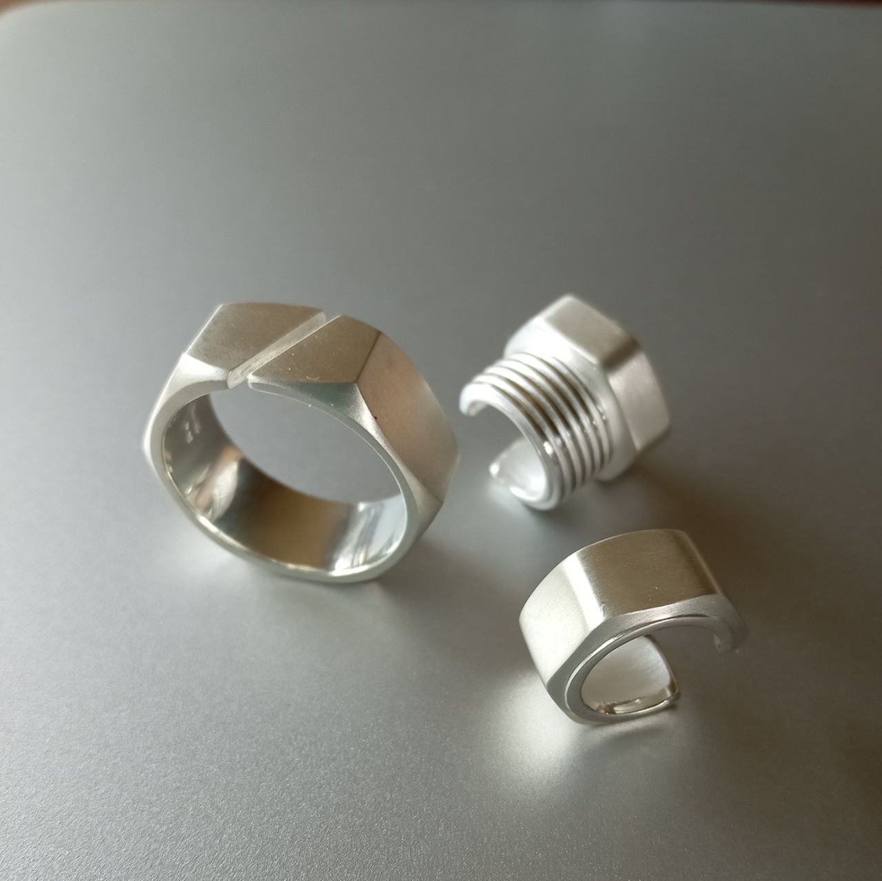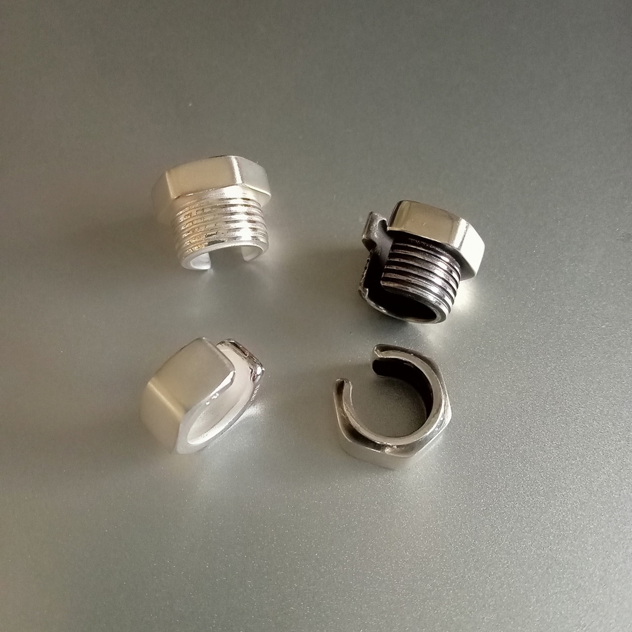 よりナットらしくするために上下の面の形を変えて製作しました。どちらを上に身に着けるかで気分が変わるかもしれません。