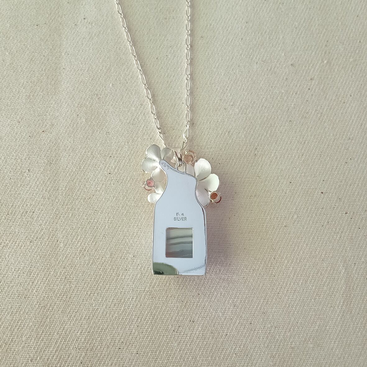 結晶アゲートとトルマリンのランドスケープ ペンダント SV925 ~山なみと花火~
