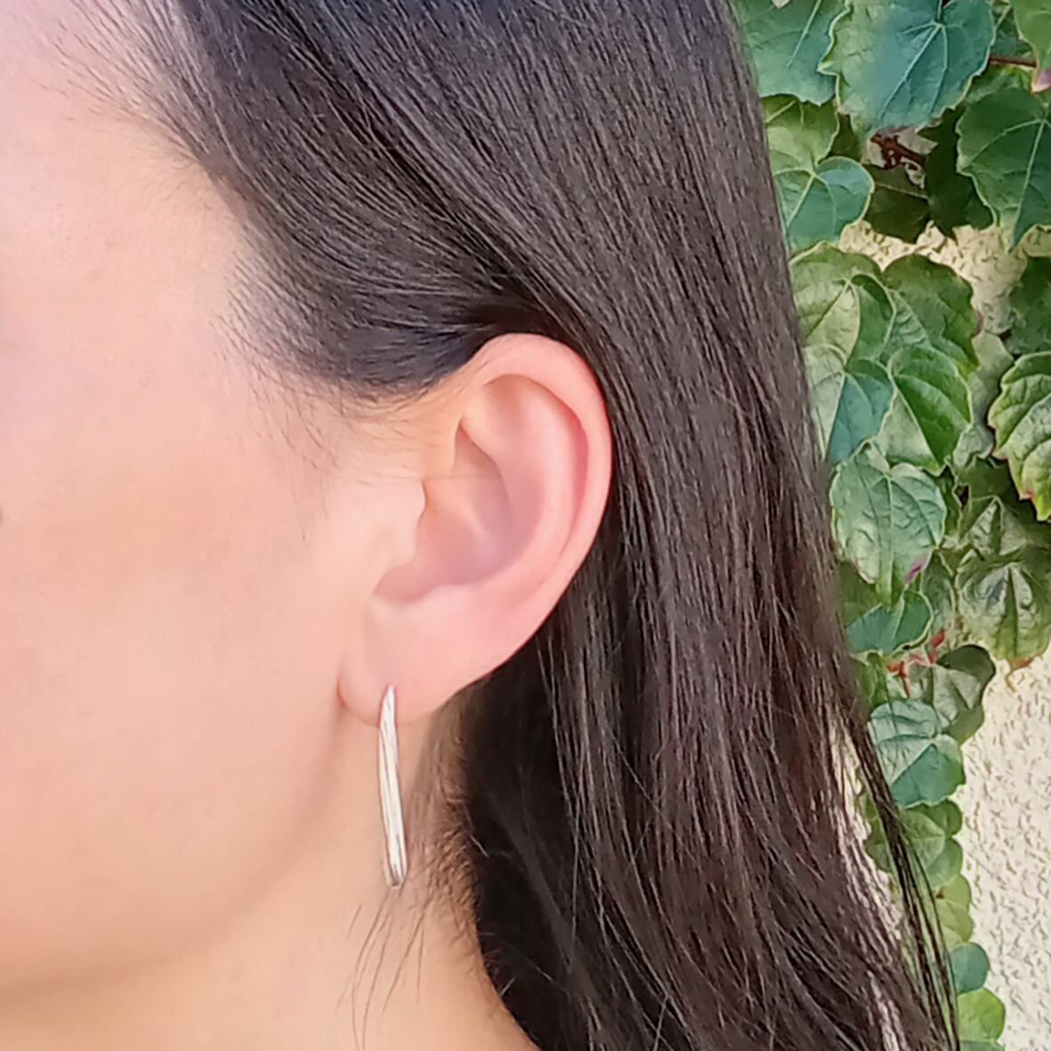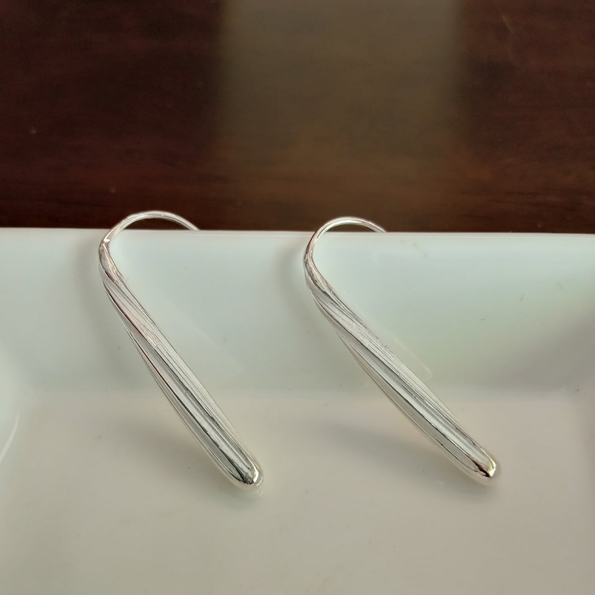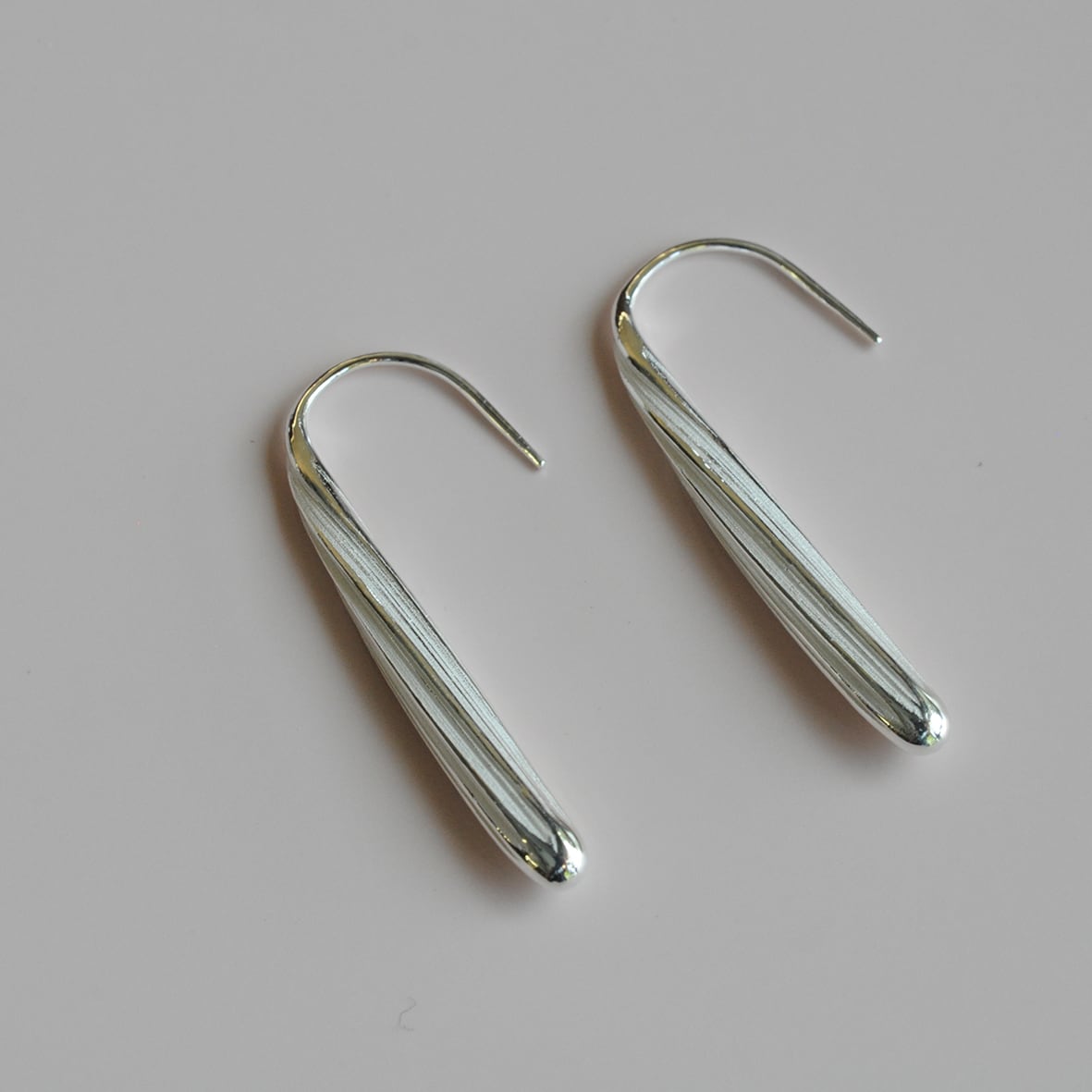 蜜蝋をひっぱって自然に表れた綺麗な平行線をねじって、優しいスパイラルのピアスを作りました。
