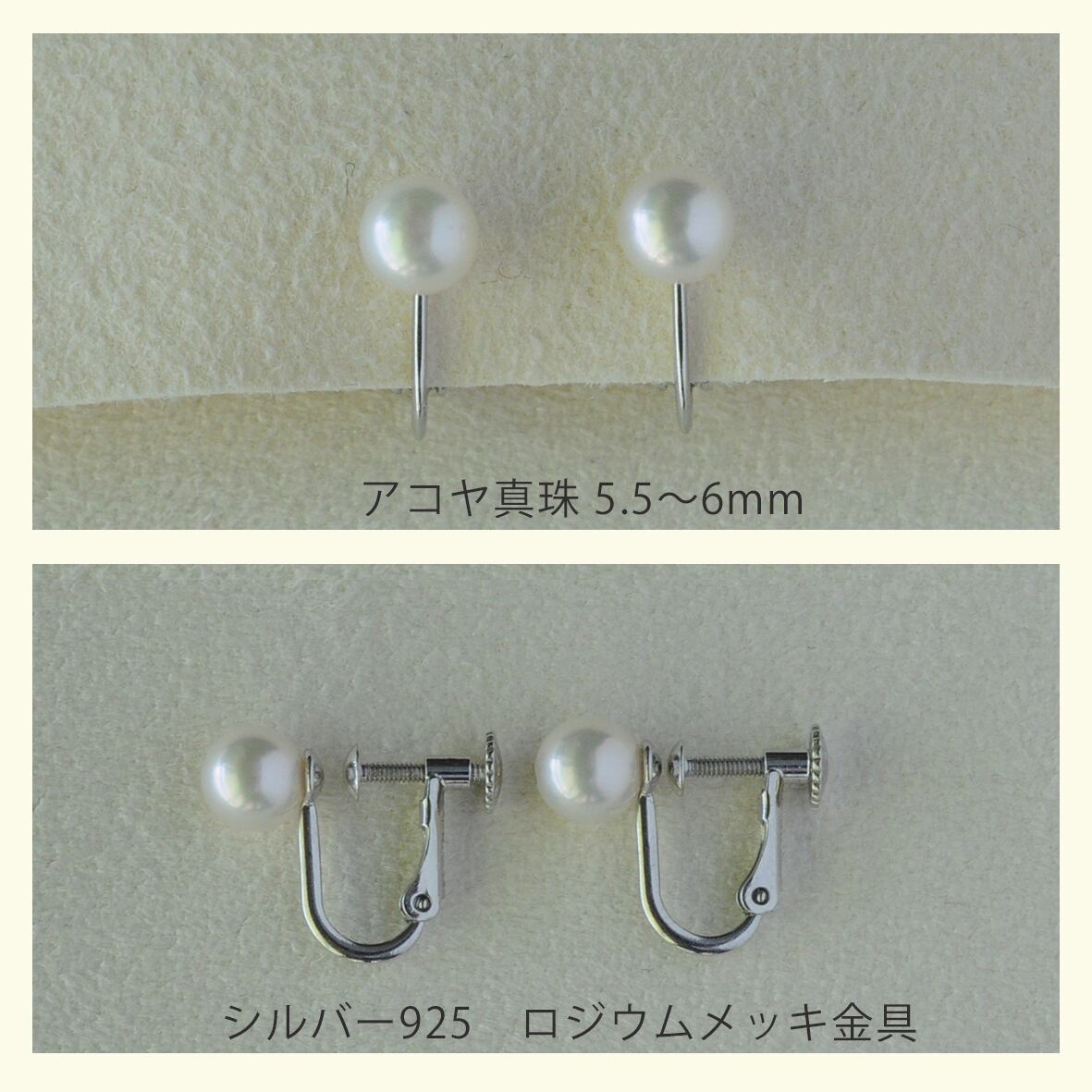 ピアスまたはイヤリングにもネックレスと色味をそろえた5.5~6mm珠を使いました。